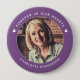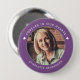 Simple, modern white and purple pin-on button for a funeral or memorial service to pay tribute to a loved one who has passed away, featuring a photo with the words "FOREVER IN OUR HEARTS" and your loved one's name. If you need any help customizing this, please message me using the button below and I'll be happy to help.