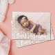 A simple modern birth announcement with baby name in white text on front and birth info message on back.