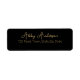 Simple, modern, minimalist and very elegant gold script typography on black background return address labels, Chic, custom made and personalized with your name and address.