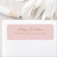 Simple, modern, minimalist and very elegant gold script typography on pink background return address labels, Chic, custom made and personalized with your name and address.