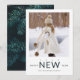 Upload your photo to this Happy New Year season greetings, a simple black and green pine photo and typography with white frame
