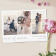 This simply chic three photo collage wedding thank you card template features an elegant, minimalist, modern design. The front features your first names and date under your favorite photo and a 'LOVE and THANKS' message conveyed with a striking blend of two distinct fonts, with 'and' in a light, flowing script between the other two words, which are in upper case with a bold, crisp formal look. The 'LOVE and THANKS' part of the design is in an elegant medium dark shade of green and can't be altered. But we also offer versions of this card separately with this text in various colors, so please check those out as well. When you edit the front to show your own names and date, you might change the color of that text to a certain color or something else instead of the default slightly softened black, according to your taste. On the back we've chosen a background hue that isn't quite white, it's a very light gray that's mostly white called White Smoke. You can change this by picking another color in the editing tools if you'd like. Or you might choose to make the background on back transparent to let the color of the paper simply serve as the base tone. The default text color on the back is the same slightly softened black that we used for the names and date text on the front, but you can change this if you prefer another color. We've put some sample text on the back for you to replace with your own message as you see fit, but please don't feel restricted by this. If you prefer delete our sample text entirely and keep the back totally blank so that you can write a handwritten note on each card instead, you can do that. Or you might want to replace our text with your own message of gratitude and your own closing and then hand sign your names when you receive the cards. In any case, please do remember to remove all of the sample/placeholder text on both sides as well as our sample photos! We've chosen matte rather than semi-gloss as the default paper choice, as it is well suited to writing your own message on and won't smudge. You can of course change this to semi-gloss, or you might consider upgrading to something with a texture such as zazzle's 'Laid' or 'Felt White', which can add a feeling of warmth and depth. We hope you'll enjoy experimenting with various aspects of this stylish modern photo collage wedding thank you card's appearance and make it uniquely yours with the intuitive design tools, your favorite photos and your inspiration!