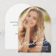 Personalize this modern graduation announcement flat arch card with your graduate's photo, name, class year, and school name. Include a special greeting on the back, your return address and other details. Modern script font typography, elegant and chic. Share your excitement to family and friends on your grad's accomplishment.