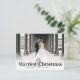 simple modern wedding announcement holiday card with elegant red script and a thank you message to your guests. The couples image can be personalized.