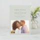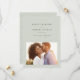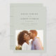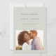 With tastefully modern but simple typography, this one-photo save the date is the perfect way to announce your engagement and upcoming wedding. The classic light sage green color works with every style of wedding from formal to casual. The back features a simple stripe. The color can be changed by clicking "customize further."