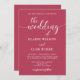 Having your Simple Modern Magenta Wedding Invitation match the theme of your party is a great detail that your guests will appreciate. The thoughtfulness of a consistent party theme is often appreciated and can show your guests that you can host a cohesive event.