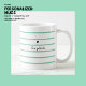 Introducing our simple personalized mug with a touch of sophistication! This mug features thin green stripes that add a pop of color to any kitchen or office space. The tiny black love heart adds a charming touch that will make you smile every time you use it. But the best part is the simple customized name that makes it truly one-of-a-kind. Whether you're sipping on your morning coffee or enjoying an afternoon tea, this mug is the perfect addition to your routine. Made with high-quality materials, it's durable and dishwasher safe for easy cleaning. Get yours today and make your morning routine a little more special!