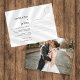 This modern wedding postcard invitation features a minimalist and chic design, combining a clean white background with sleek black typography for a fresh, contemporary feel. The front showcases a simple yet stylish layout for event details, accented by a spacious format that exudes elegance. The back highlights a romantic photo of the couple, creating a warm and intimate atmosphere. Perfect for modern, urban, or minimalist weddings, this design effortlessly blends sophistication with personal charm, making it ideal for couples who value simplicity and style.