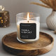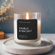 Simple Modern Minimalist Black Candle Label. Personalize all text for a custom candle label sticker for your small business.