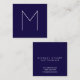 Simple Modern Minimalist Navy Blue and White Monogram Square Business Card