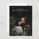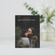 This minimalist modern photo wedding save the date postcard template has a simple, clean look with your names at the bottom in a script font. You might prefer another font style, script or otherwise, for your names or another part of the text. You can also change the size and color of the text. Note however that when you edit this card to include your own information, some text fields such as the date and wedding location are the same for both front and back, so when you change this on one side, it will automatically change on the other side as well. This limits your ability to delete certain text or change the font, etc., as the change will take effect for that text field on both sides of the card, which you may not intend. Your names, however, can be edited separately on each side, as each side for the names has a distinct text field in the editing mode. Also be sure to notice and change the sample return address info to your own info, as it is rather small and is down at the bottom of the back of the card, easily overlooked! You can remove the lines for the addressee's information and/or the 'deliver to' text there if you want a simpler look.