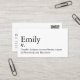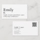 Custom modern and professional business card design with a dictionary definition design style. With template fields for name, company name/title, contact information and QR code (delete if you prefer). Minimalist simple modern black text on white background. Change background colors, move and resize elements with the customization tool. ©Marisu Valencia