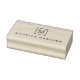 Modern, minimal monogram rubber stamp with your monogram initial inside a square border and the name below in a modern sans serif font.