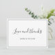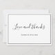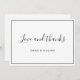 Edit the front and back of the card to change our sample details to your own, and delete without replacing text if you prefer a simpler look. The 'Love and thanks' message on the front in a handwriting script uses a capital 'L' for only the first word, but you can change this and make all the letters lower case, or keep the capital 'L' in 'Love' and make the 't' in 'thanks' capital as well, if you prefer. Or you might want to change this part of the design and show a different message there. You can change the text color and font and text size, and you can also change the background color on either side to suit your taste. We have set the background on both sides as transparent to let the color of the paper simply serve as the base tone. The text on the front as well as the border is black by default, and the text on the bottom of the back side of the card is a very dark gray that's mostly black. You might prefer to delete the text on the back without replacing it with your own details, leaving the back blank. Then you can write a handwritten ote on each card after you receive your cards.