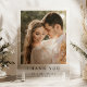 Express your heartfelt gratitude with this modern personalized thank you card design. Featuring a beautiful photograph of the happy couple and elegant, minimalist text, this design offers a sophisticated way to show your appreciation. The sleek and contemporary aesthetic makes it a cherished memento for your guests, allowing them to fondly remember your special day and display it as a lasting keepsake in their homes.