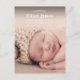 This simple, modern birth announcement postcard features a large photo and a white text overlay. Customize with your favorite photo, your baby's name and birth details, and your names. This design works best for baby photos with a darker background so that the white text can be read easily. On the back, you can add a personalized message.