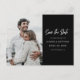 Presenting our contemporary and elegant Save the Date postcard invitation - a chic and uncomplicated method to announce your special day. The front of the card highlights a treasured photograph of the joyful couple, immortalizing a moment of genuine love and anticipation. The customizable details against a sleek black backdrop can be tailored to suit the date of your event. On the flip side, there is generous room to incorporate crucial particulars about your wedding, guaranteeing that your guests possess all the necessary information to reserve the date. With its modern design and adaptable features, this postcard invitation serves as an ideal memento for your cherished guests.