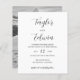 Contemporary black and white budget wedding invitation featuring a simple and minimalist layout with your names in an elegant calligraphy script and your wedding details below in a modern format. The back has your favorite photo.