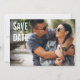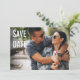This modern photo save the date announcement card features your special photo overlayed with your names, date and venue in white text. Designed by Thisisnotme©