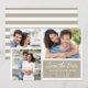 Cute three-photo neutral and white save the date cards. Perfect for a nautical or coastal wedding! Featuring three photos and a blue box with modern handwriting script and serif text with the wedding day details. Super cute and simple wedding save the dates. The background even has a cute horizontal cream and white stripes pattern. You can even change the background color from blue to the color of your choice by going into the "Customize it!" tool.