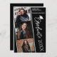 The Simple Modern Photo Strips Black Graduation Announcement Card is a modern mix elegant design. With a black color scheme, it features photo collage film strips, a graduation hat, and stylish calligraphy. The card captures the essence of graduation, symbolizing success and celebration. The film strips evoke nostalgia, showcasing essence of the graduate's joy. The graduation hat adds tradition, while the calligraphy adds a personal touch. This visually striking card appeals to graduates and their families, serving as a cherished keepsake. Its modern design and thematic elements make it a fitting tribute to the graduate's accomplishments.
