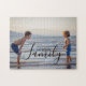 Simple Modern Photo Template Custom Family Name Jigsaw Puzzle features your favorite photo with your personalized family name. Makes a fantastic gift for Christmas, birthday, anniversary, Mother's Day, Father's Day, Grandparents Day and more. Personalize by editing the text in the text box provided. Designed by ©Evco Studio www.zazzle.com/store/evcostudio