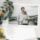 This simple, stylish modern photo wedding thank you postcard template features your names and date beneath your photo along with 'LOVE & THANKS' highlighted in an elegant shade of medium dark green. The other text on the front is a slightly softened black. You might choose to change the font, punctuation or color used for various text elements of this design on the front and/or back. For example, you might choose to change the color of the 'LOVE & THANKS' text, or change all of the text on the front to gold, etc. Or you might want to replace the LOVE AND THANKS text with another message of gratitude. We've made the background on both sides transparent by default, to let the color of the paper simply serve as the base tone. You can easily change this by either picking one of the basic colors in the editing tools, entering another color number in place of ours if you have a specific hue in mind that you found in your research, or by looking at the color spectrum tool and choosing something by sight. The default text color on the back is dark gray, but you can change this if you prefer another color. We've put some sample text on the back for you to replace with your own message as you see fit, but please don't feel restricted by this. If you prefer delete our sample text entirely and keep that part of the postcard totally blank so that you can write a handwritten note on the back of each postcard instead, you can do that. Or you might want to replace our text with your own message of gratitude and your own closing and then hand sign your names when you receive the cards. In any case, please do remember to remove all of the sample/placeholder text on both sides, including the sample return address on the back as well as the front sample details and photo! We've chosen matte rather than semi-gloss as the default paper choice, as it is well suited to writing your own message on and won't smudge. You can of course change this to semi-gloss if you prefer. Make this stylish modern wedding thank you postcard uniquely yours with the intuitive design tools, your favorite photo and your inspiration!