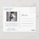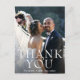 Modern and stylish wedding thank you postcard featuring a simple design with "Thank You" in large bold typography and your last name in a sans serif font, over your favorite full bleed vertical photo. The backside has a square picture along with your personal message and return address for easy mailing, in a navy blue serif font over a white background.