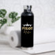 Simple, modern ‘PILOT’ Typography in gold font color on a black background, making this an elegant looking water bottle. The text and airplane image color can all be customized. Add your Pilot's name for that personal touch.