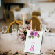 This sign stands upright on its own on the table making it easy for the wedding guests to find their seating. Table numbers enhance the look of your tablescape and put the finishing touch on your special day. Personalized text printing of the names or numbers of your tables. Add your custom wording to this design by using the "Edit this design template" boxes on the right hand side of the item, or click the blue "Customize it" button to arrange the text, change the fonts and colors and to also add additional information or images to this design.