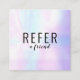 Simple, modern, professional referral card with a holographic, rainbow gradient, iridescent, pearl background. Perfect for professionals, including spas, salons, makeup artists, hairstylists, cosmetologists, skincare specialists, beauticians, nail salon retailers and boutiques. You can personalize it by adding your contact details and a special discount offer on the reverse. Designed by Thisisnotme©