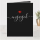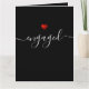 Simple Modern Red Heart Black Engagement Announcement card with envelope. This Engaged card is elegant and classy.