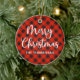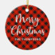 Simple Modern Red Plaid Merry Christmas Ceramic Ornament