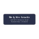 A simple yet modern font-designed label for your RSVP envelopes. Easily edit the text to your desired details. The background color can also be edited if desired. Enter the Zazzle design tool and select another color using the color picker tool. The blue of this label matches the items in our "Navy Blue Dark Boho Wedding Suite". Simple Modern Return Address Label.