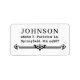 Simple modern black on white return address labels featuring a classic serif font above a clean lined scroll for a chic, minimal feel.