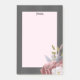 Immerse yourself in the enchanting allure of our 'Simple Modern Rose and Stripes' notepad, where sophistication meets whimsical charm. Against a backdrop of delicate blush pink, elegant gray pinstripes lend a touch of timeless refinement, evoking a sense of classic style. Adorning the corners are intricate roses, their petals delicately unfurling amidst lush green leaves, adding a flourish of natural beauty to your every note. Whether jotting down thoughts, sketches, or heartfelt messages, this notepad invites you to capture moments of inspiration with grace and elegance.