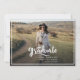 Modern, boho, rustic, simple text overlay full photo graduation announcement card to announce your graduation. Click the "Personalize" button above to replace the photo, name, school, and graduation year. You can also click the "Customize further" for more flexibility in adding text and photos.