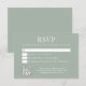 Create your own custom wedding RSVP cards for your guests. Simple modern sage green design with elegant typography and scannable QR code to your website.