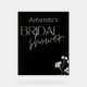 Simple script elegant Bridal Shower acrylic sign. Floral accent, black background.
