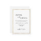 Plain white envelopes are included with paper invitations and will come to fit the invitation size you select. If you don’t need the envelopes, you may choose to not receive them by selecting the dropdown below "Envelopes" and choosing "None." If you’d like to have a design on your envelopes, you can browse all of these available envelopes to find the design that complements your Simple Modern Script Minimalist Gold Frame Wedding Invitation.