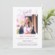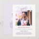 Elegantly minimalist pink and purple graduation announcement card. It's a color palette that talks about scholarly achievements, intellect, passion and regality. Here, a clean typography meets a chic photo style. Perfect for high school or college grads. Simple, modern, stylish! Celebrate their achievement with our exquisite fully customizable graduation invitation! Customize and buy now!