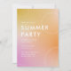 A modern summer party invitation featuring a pink, yellow and orange gradient as background. Use this invitation to invite your friends and family to your next summer party at your house. Use it for cocktail parties, happy hours, BBQs, housewarmings and more.