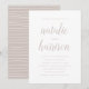 Introducing our sleek and stylish Simple Modern Script wedding invitation, where simplicity meets sophistication to set the tone for your special day. Featuring the couple's names elegantly displayed in an elegant taupe script against a crisp white background, this invitation exudes contemporary charm. The wedding details are presented in clean and minimalist taupe lettering, ensuring clarity and sophistication. Perfect for casual weddings in any season, this invitation offers timeless elegance with a modern twist. Make a statement and invite your guests to celebrate your love with our Simple Modern Script wedding invitation.