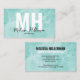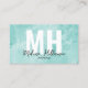 Simple Modern Watercolor Teal Monogram Business Card. A fun and simple business card for brands, small businesses, or individuals like lash specialists, makeup artists, estheticians, hair stylists, corporate or office related businesses, and so much more! Right now it is a turquoise or teal blue, black and white coloring, but you can actually switch out any of the colors to whatever you'd like to use! The white watercolor pattern will stay overlayed over the color you choose for the background. A mix of modern and script typography for a professional but chic look.