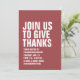 With bold white typography, this mauve Thanksgiving dinner invitation is easily customized and sets the tone for a fun and casual turkey day feast