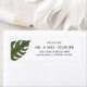Modern wedding return address labels featuring a tropical green palm leaf along with the words, "The Future Mr. and Mrs." and your name in a serif font and two lines of text for your return address in a sans serif font. These return address labels are perfect for a summer destination wedding by the beach and are a great way to add a personal touch to your envelopes.