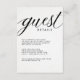 This modern and minimal wedding guest information card features a faux watercolor look paper with black text and calligraphy. You can use these cards to include information about your wedding reception, driving directions, accommodations, and anything else you need your guests to know. See the complete coordinating wedding suite here in the store.