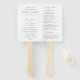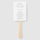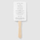 Elegant wedding program hand fan featuring a simple design with a modern sans serif font and an elegant script font.