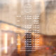 White multiple opening hours per day window decal. Complex business hours window cling featuring custom logo, opening times and contact details like website or phone number in white. For mounting on the inside of the window or store front. © y.BEE PAPERIE #windowcling #windowdecal #multipleopeninghours #complexopeningtimes #decaldesign