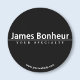 Simple Modern White Text on Black Classic Round Sticker